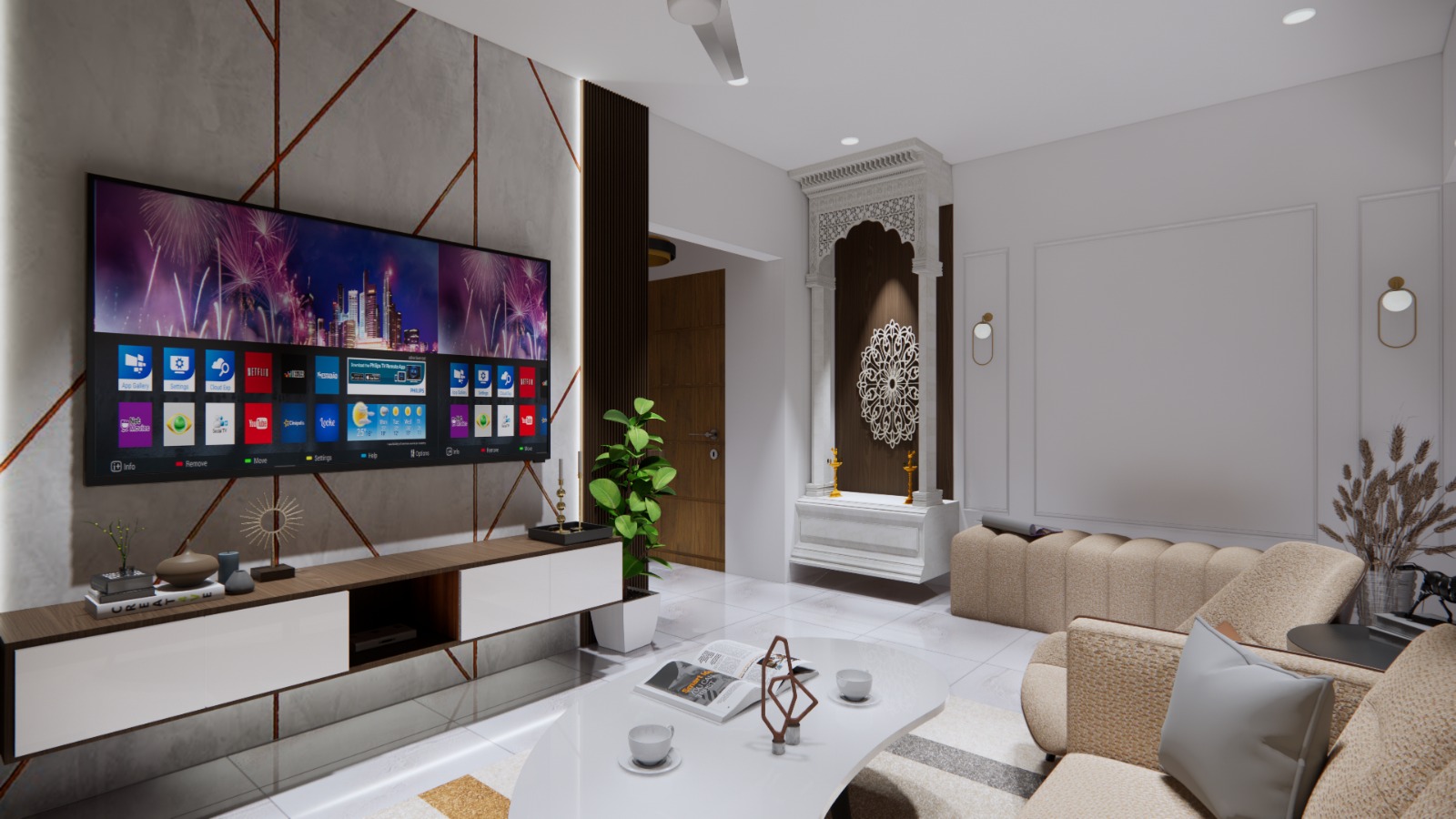 We designed a modern and functional flat for our client, Mr. Amit. The project focused on creating a cozy, stylish space with smart storage solutions, elegant furnishings, and a harmonious color palette tailored to his preferences.