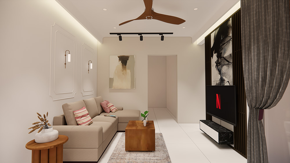 For Mr. Amol, we designed a sleek and elegant flat that blends modern aesthetics with comfort. The project featured neutral tones, contemporary furniture, and well-planned layouts to create a balanced and serene living environment.