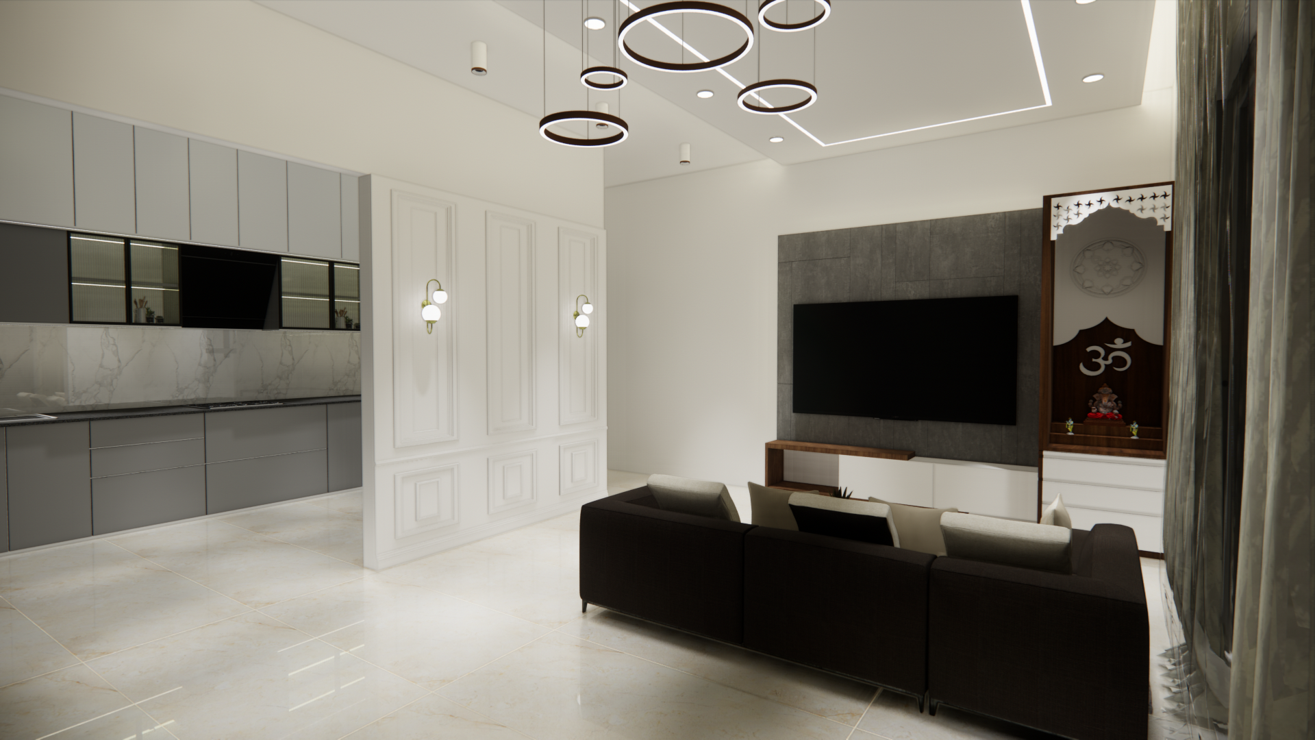 The final design was a balanced blend of style and comfort. Mr. Himanshu was pleased with how the interior transformed his flat into a modern, inviting, and well-organized living space.