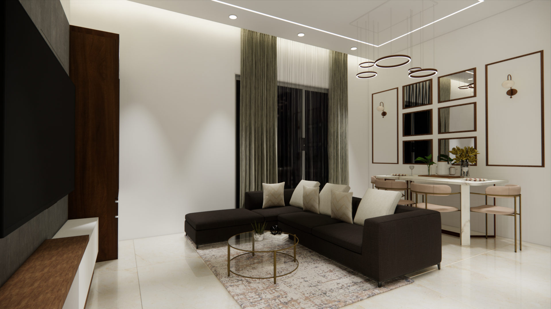 The goal was to design a functional home that reflected Mr. Himanshu’s contemporary taste. We incorporated space-efficient solutions, personalized decor, and an open layout to make the most of the available space while maintaining a luxurious feel.