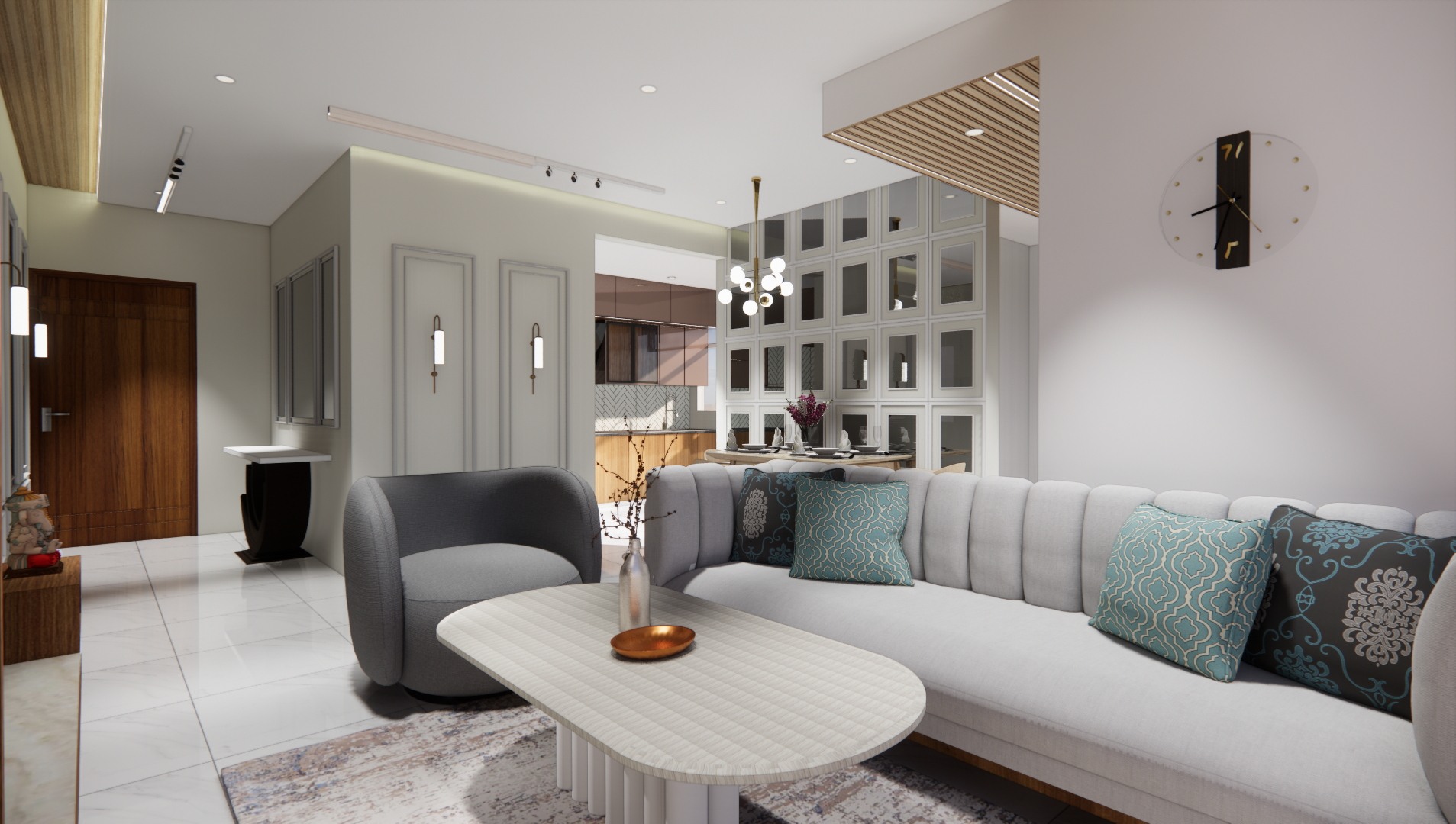 The goal was to create a lively yet practical interior, focusing on space optimization, contemporary decor, and personal touches that reflect Mr. Sandeep’s dynamic personality.