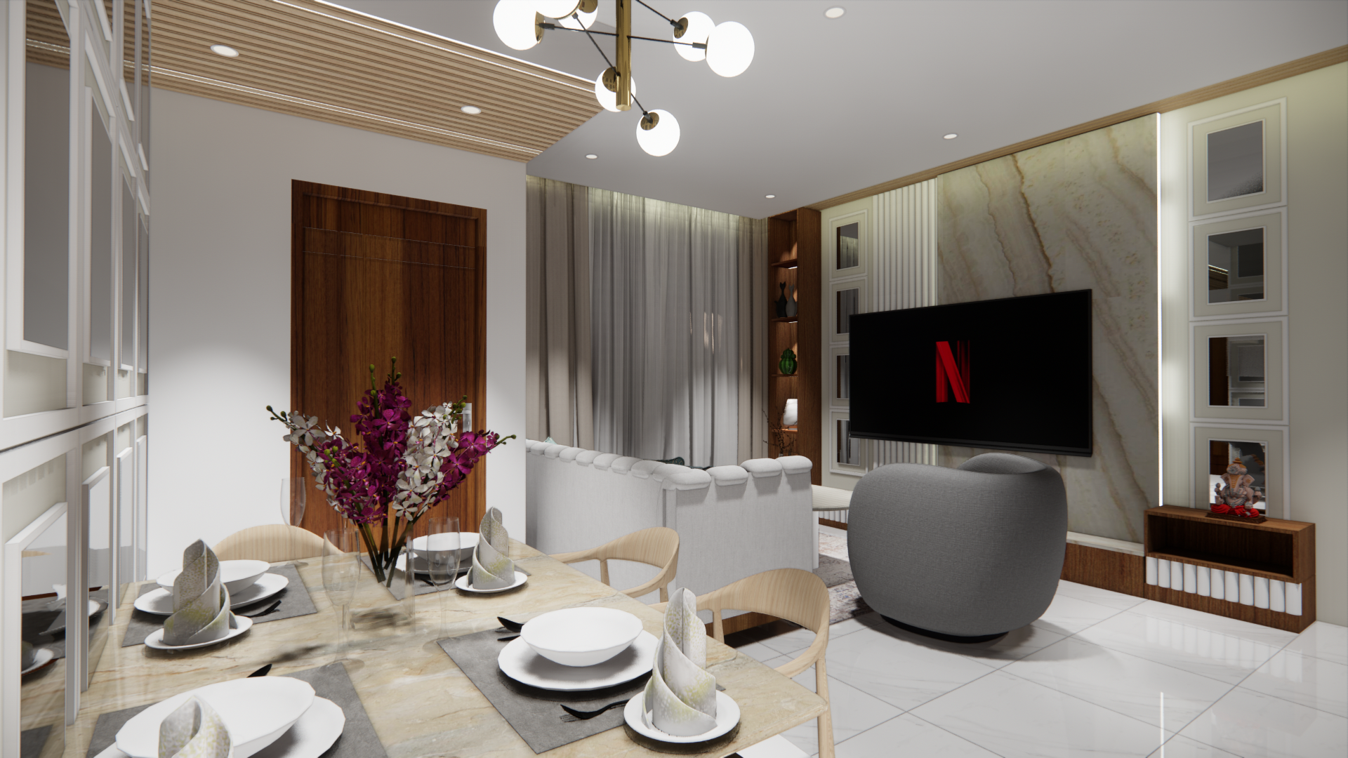 For Mr. Sandeep, we designed a vibrant and functional living space that blends modern aesthetics with comfort. The design incorporated bold accents, sleek furnishings, and a well-thought-out layout to create an inviting home.