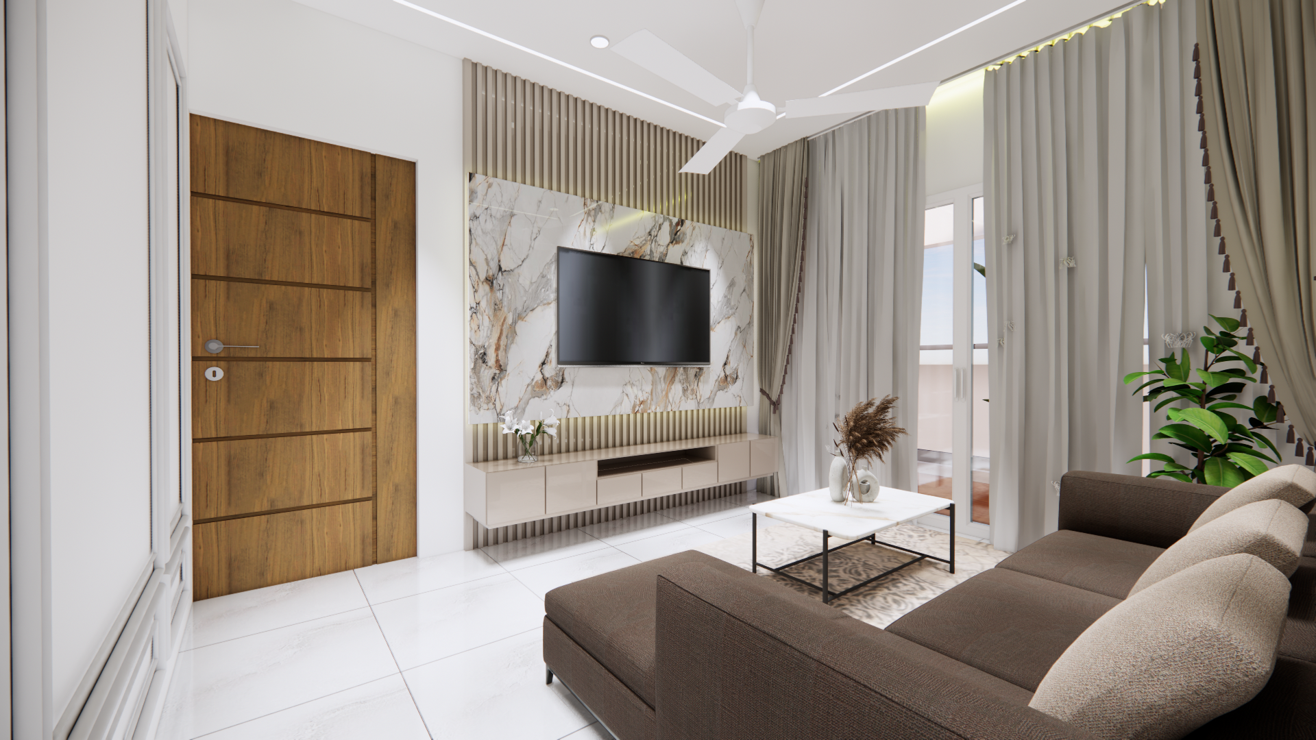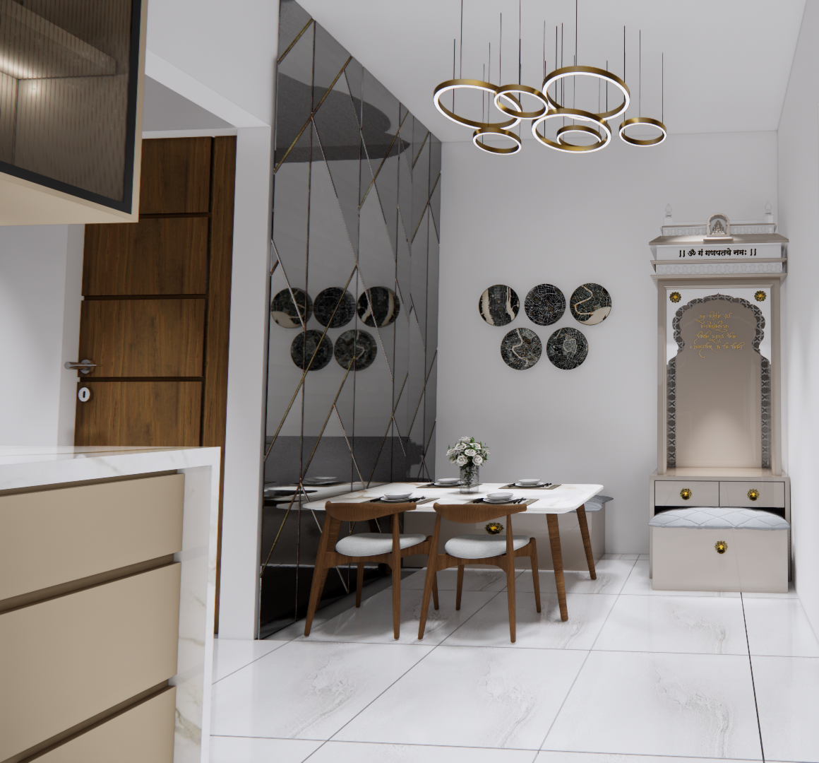 We crafted a contemporary and vibrant flat design for Mr. Vaibhav, focusing on clean lines, bold accents, and multi-functional spaces. The interiors were designed to reflect his dynamic personality while ensuring maximum comfort and practicality.